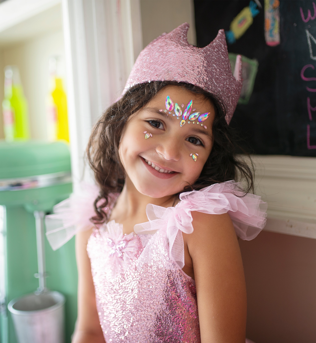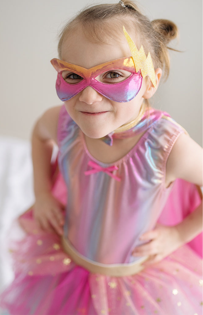 Disfraz Tutú, Capa Y Antifaz Superheroína Dorado Rosa