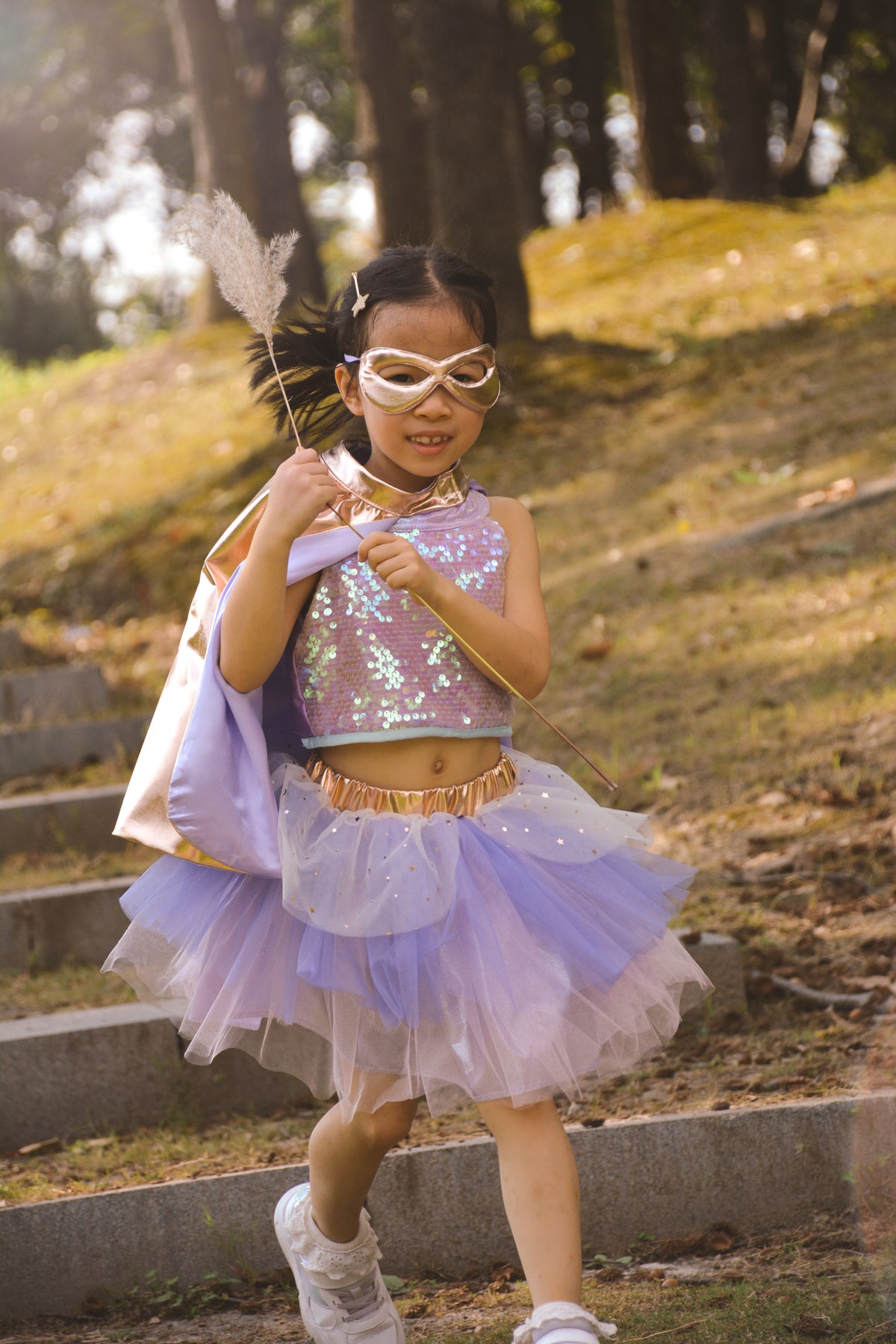 ¡Los conjuntos de superheroína de tutú, capa y antifaz son un clásico que no pasa de moda!