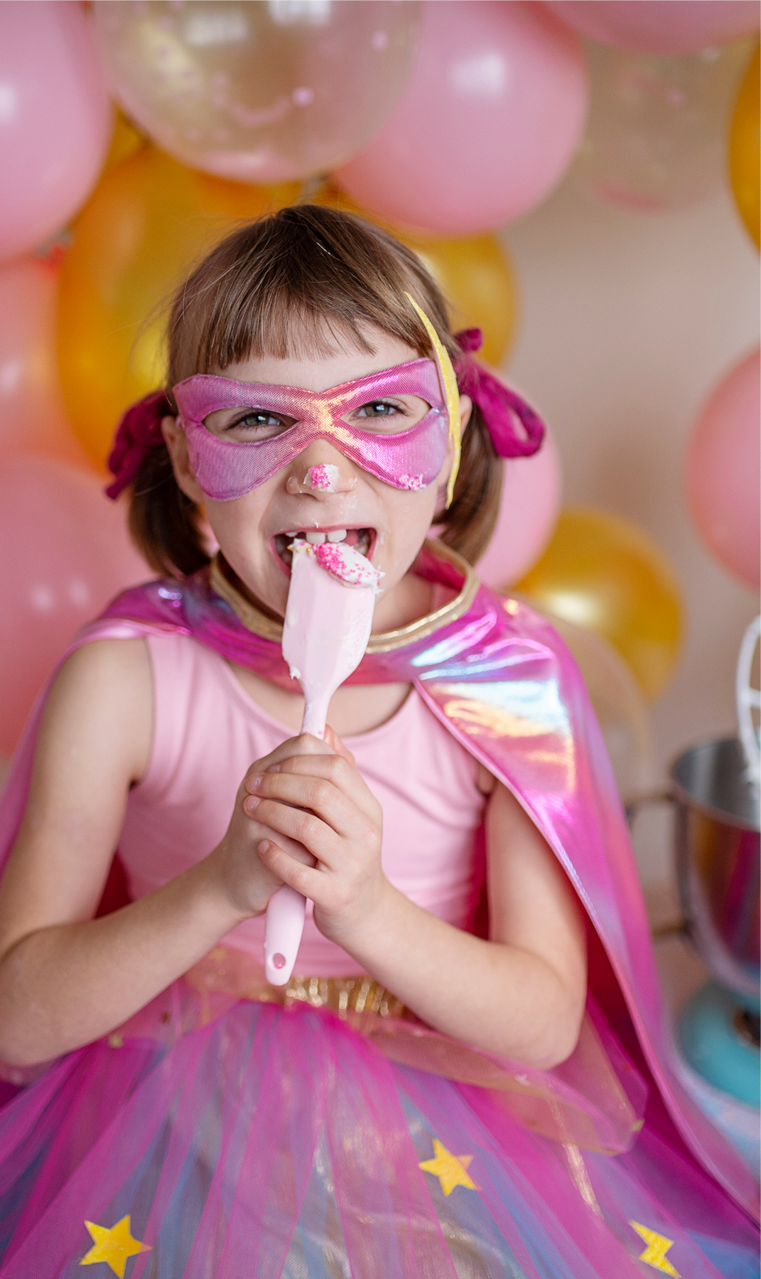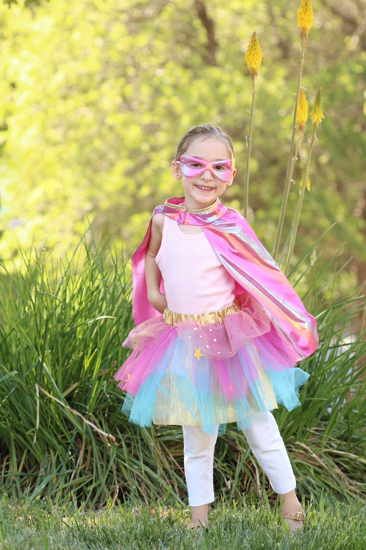 ¡Los conjuntos de superheroína de tutú, capa y máscara son un clásico que no pasa de moda!