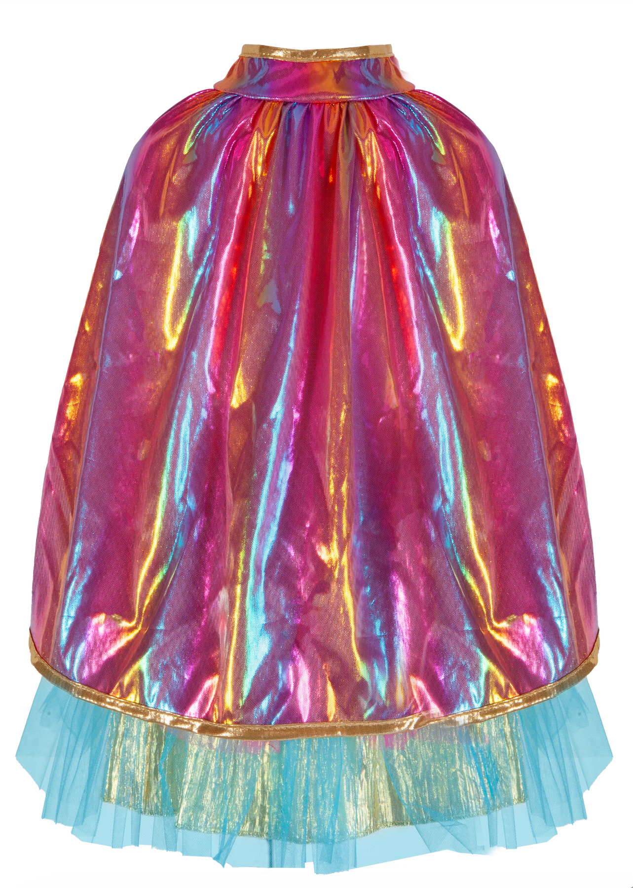 Pack: 1 Capa, 1 antifaz y 1 falda color rosa iridiscente