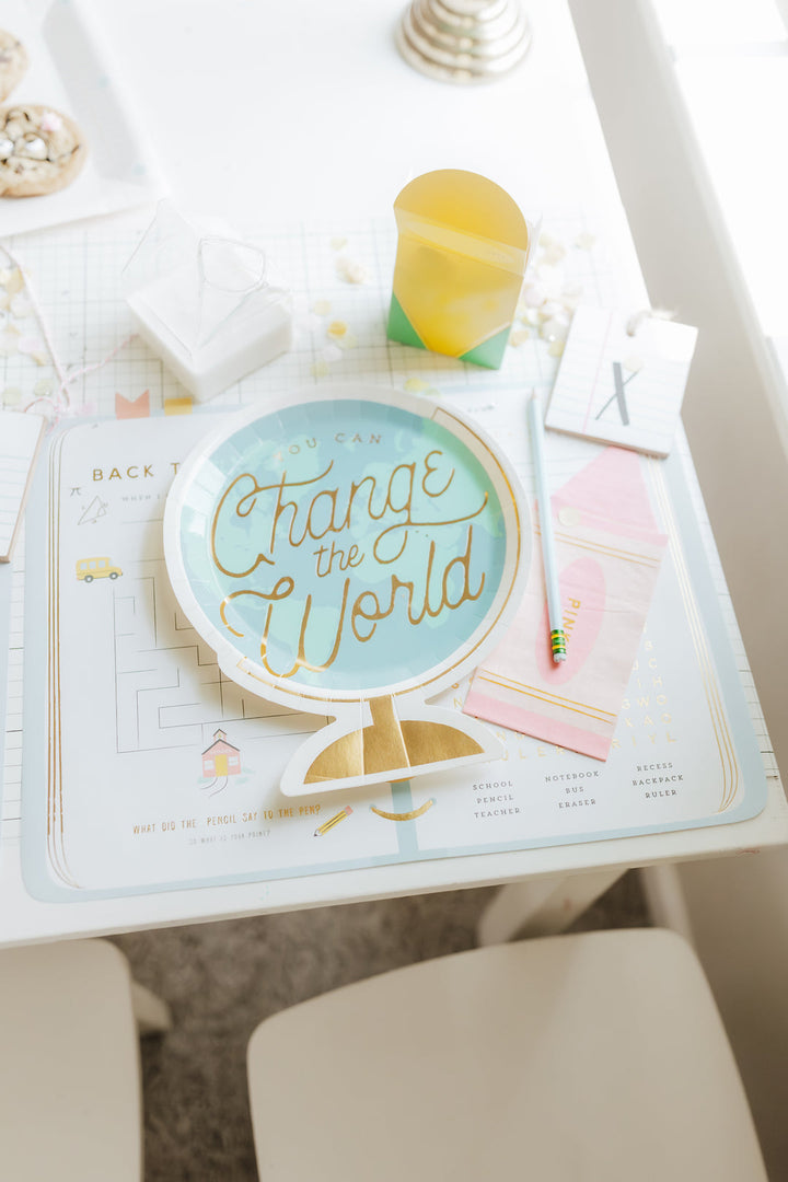 Este divertido y original plato con forma de globo terrestre es perfecto para cualquier celebración de vuelta al colegio, graduación o cumpleaños. Es un toque original en tu mesa y la hará brillar con detalles dorados.