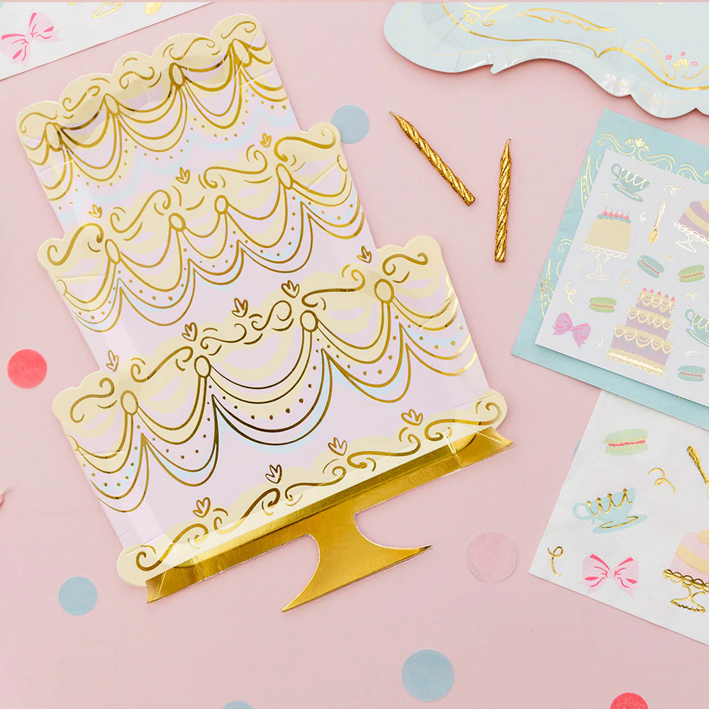 Pasteles, cupcakes, macarons... Con una preciosa paleta de colores pastel y un brillante papel dorado, ¡estos platos deslumbrarán en cualquier ocasión! Ilustrado por Alley McGlynn para Daydream Society