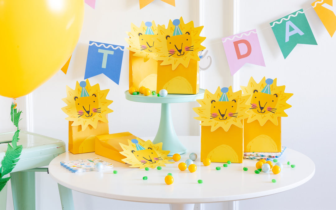 Haz que tu fiesta de cumpleaños con temática de animales sea un éxito con estas bolsas de regalo con diseño de león. Perfectas para repartir dulces y pequeños obsequios, estas encantadoras bolsas añaden un toque salvaje a tu celebración y deleitan a invitados de todas las edades.