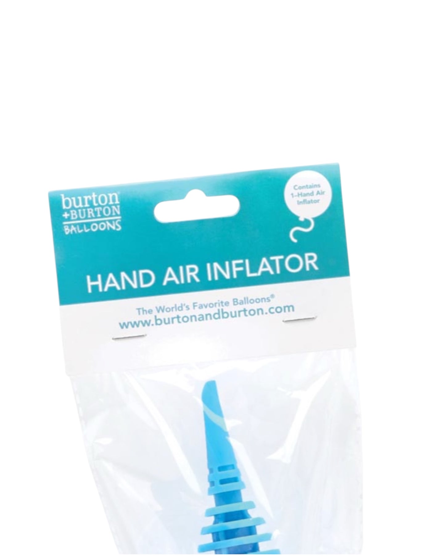 Bomba de inflado manual azul . Para usar con globos de látex de 5", 6", 260 y 350. También apta para globos de lámina de aluminio de todos los tamaños.