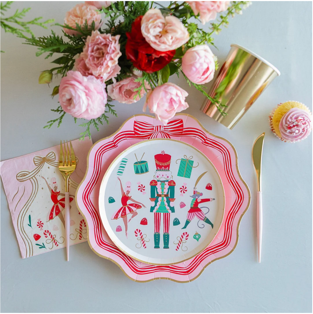 Dale un toque festivo a tu mesa navideña con nuestros Platos de Postre Cascanueces. Con hermosas ilustraciones inspiradas en el ballet Cascanueces, estos exquisitos platos añaden un toque mágico a cualquier celebración navideña. ¡Combínalos con nuestras servilletas de papel a juego para una encantadora mesa de fiesta con temática de Cascanueces!