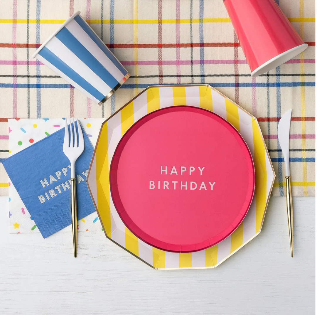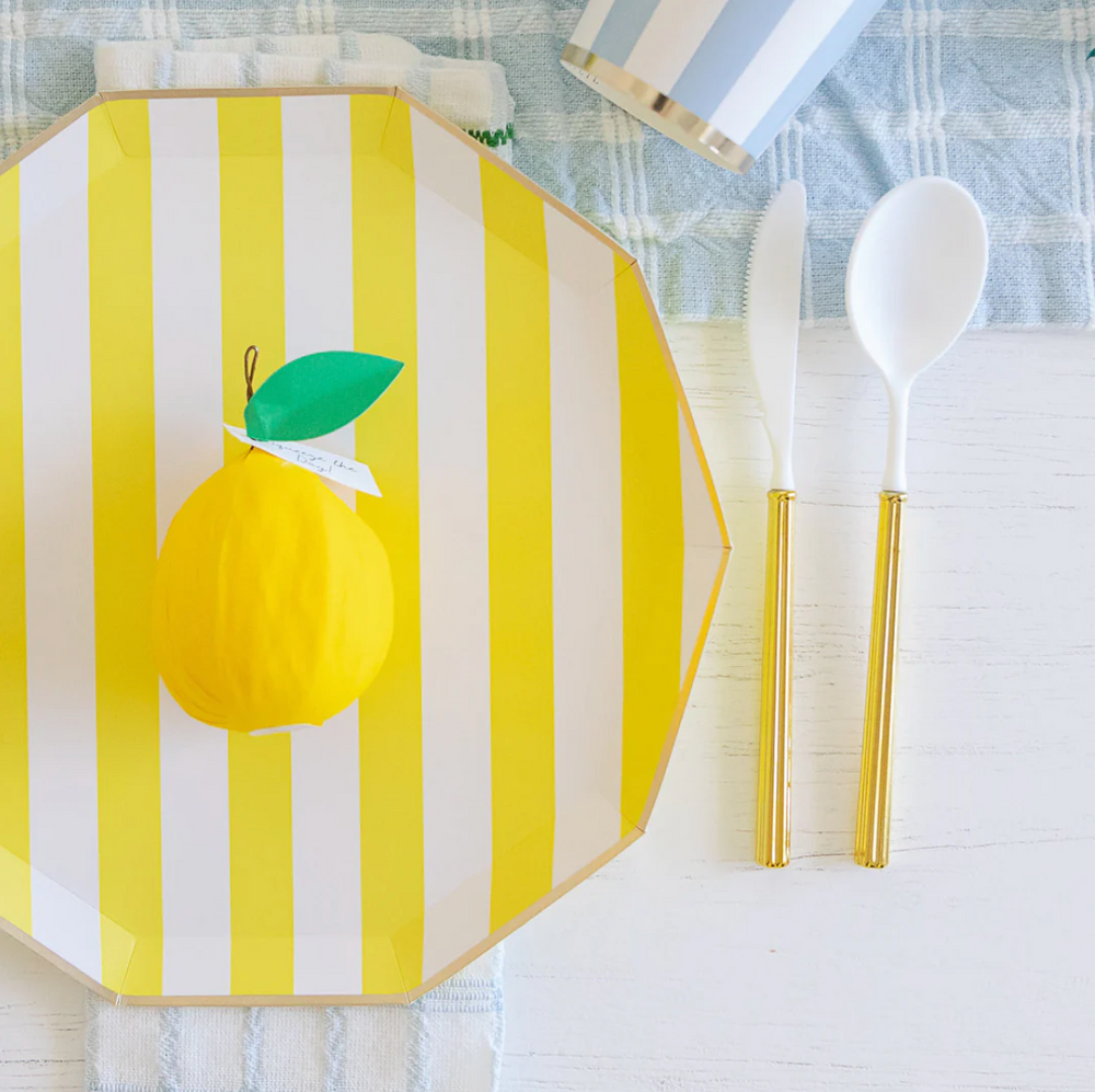 Estos platos a  rayas anchas color amarillo vibrante de la colección Cabana by Bonjour Fête, están hechos con materiales de primera calidad y resistencia, ofreciéndote un elegante diseño. Son perfectos para una fiesta de verano entre amigos, baby shower o fiesta temática infantil. ¡Dale un toque especial y sofisticado a tu mesa. French design by Bonjour Fête.