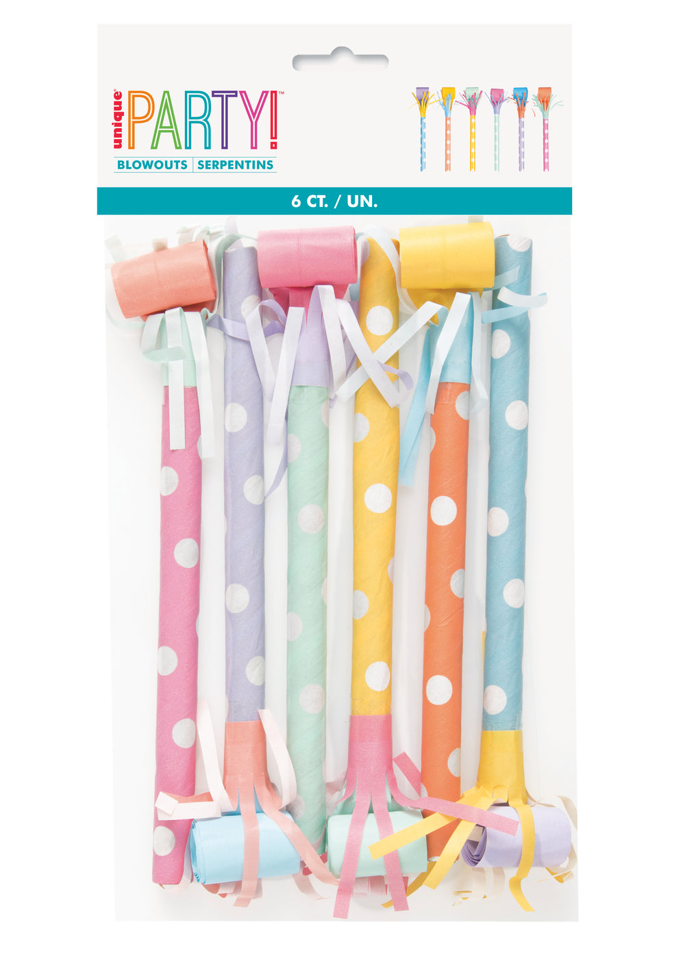 Dale un toque divertido y cool a tu fiesta con estos sopladores de papel en colores pasteles. Un básico para tu fiesta para llenarlo todo de alegría y color. Las puedes utilizar para rellenar tus bolsitas de invitados.
