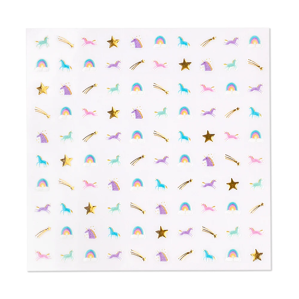 Unicornios y arcoíris... wow! Dale un toque mágico a tus manos con estas pegatinas para uñas. Se aplican como por arte de magia y dejarán tus uñas increíbles en un instante. Ilustrado por Hello Lucky para Daydream Society