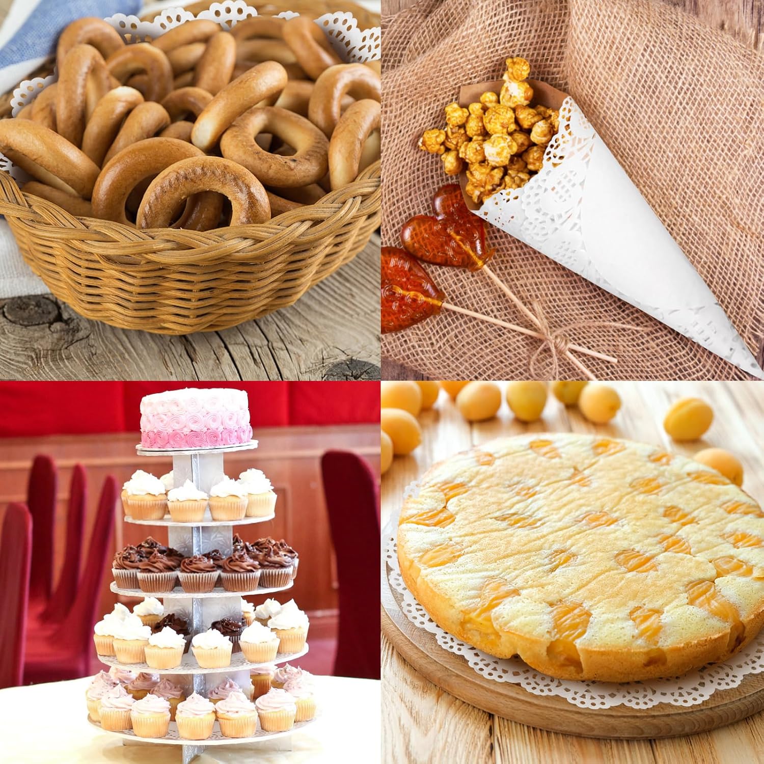 Elegante diseño de encaje: realce la belleza de su mesa con estos mantelitos de papel con bordes de encaje intrincadamente diseñados; ideal para agregar un toque de sofisticación a cualquier evento; adecuado para bodas, fiestas y reuniones especiales. Ideal para añadir un toque de elegancia a la mesa